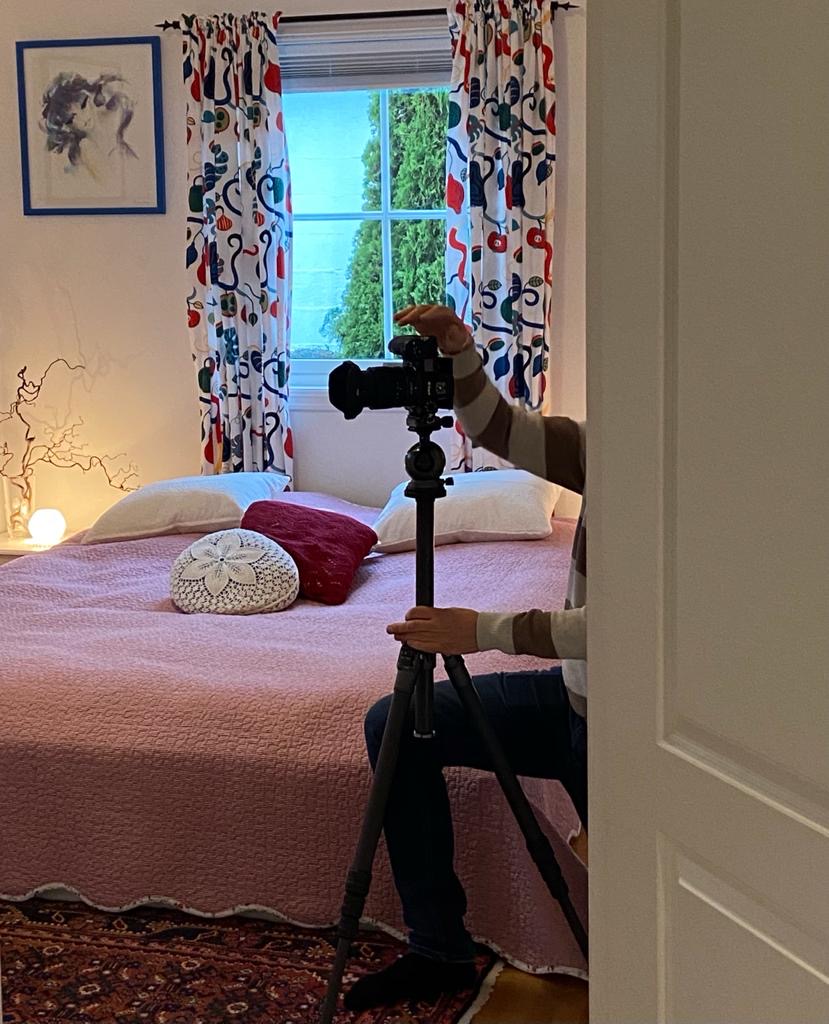 Den jobben han har gjort er viktig for oss, sidan bileta skal utgjere fyrsteinntrykket av boligen og forhåpentlegvis freiste potensielle kjøparar til å kome på visning. Det blir ikkje før i januar. Det er altså ein heil månad til eg må gjere heimen vår mest mogeleg upersonleg att.