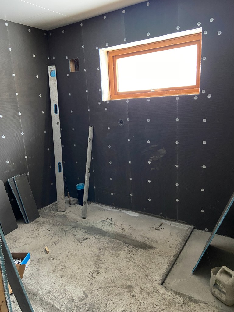 Me har gjort den enkle jobben det var å velje fliser. Ekspertane har tenkt på alt det vesentlege, – slikt som blant anna støyping, membranar, sluk og ventilasjon.