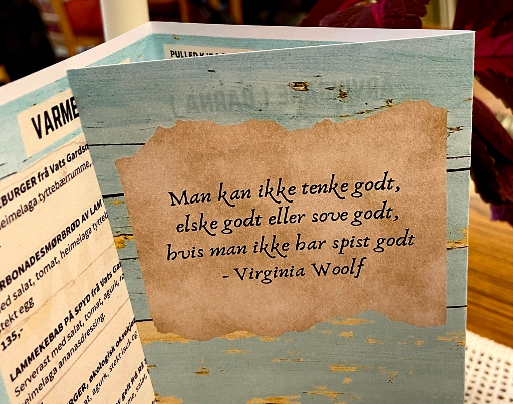 9. oktober var me, saman med gode vener, på konsert på Kafé Tid. Det var «Gryting – far og sønner» som stod på scena. Medan me venta på at konserten skulle byrje, kunne me få oss noko godt å ete. På menyen fann eg dette sitatet: