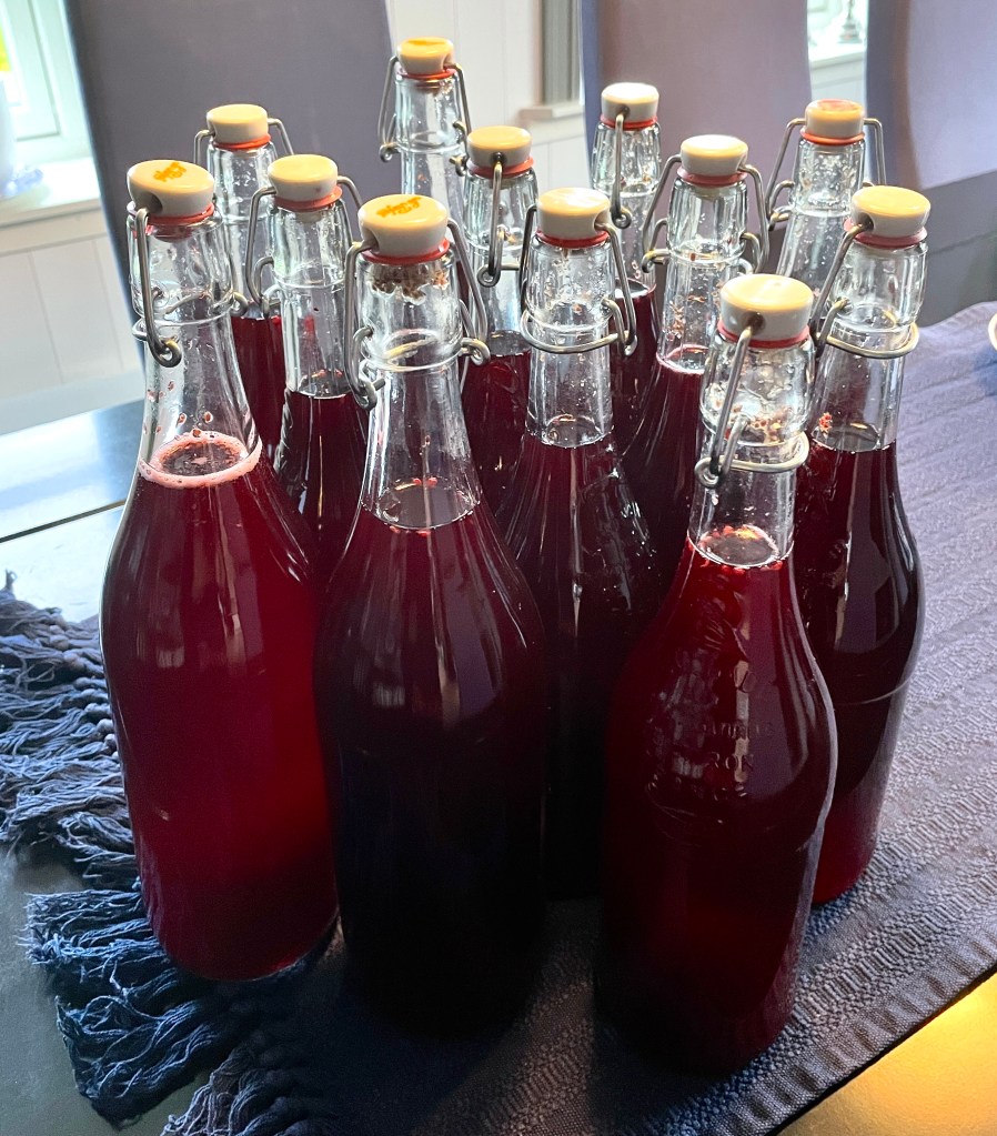 Det luktar slik det gjorde på mormor sitt kjøkken i august. Det smakar slik det gjorde heime då eg var lita. Det er stas å gjere det slik kvinner i generasjonar før meg har gjort det. Det kjennes godt å få det til. Eg likar å vite at nede i kjellaren har me hyller fulle av saft og syltetøy laga av bær som er plukka i eigen hage og konservert på gamlemåten.