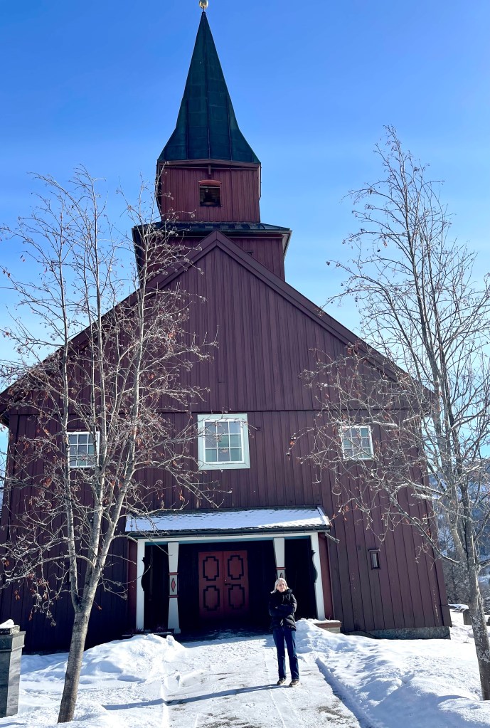 Framfor Ål kyrke. (Det var litt kaldt, ja.)