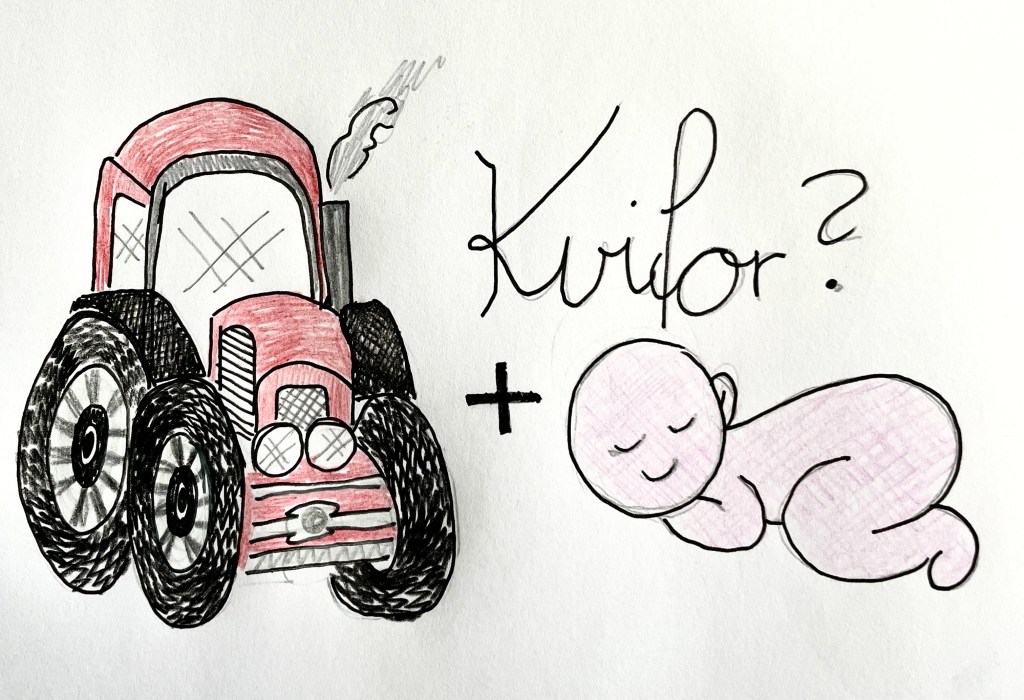 Det var grytidleg morgon. Vegen låg sundags-tom framfor oss i sommarsola. Radioen spelte Hellbillies og me prata om alt det me kunne glede oss over denne dagen. Bak ein slakk sving dukka traktoren opp. Brei og raud framfor oss. Sjølv om han held god fart, var det både litt irriterande og ganske merkeleg med ein traktor på sundagstur. Me passerte ei busslomme, men traktorføraren viste ingen vilje til å sleppe oss fram. Vegen var smal og uoversiktleg, men endeleg kunne sjåføren min ta oss forbi. Eg titta bakover, opp og såg traktorføraren stire stivt framfor seg. Han hadde eit spedborn, inntulla i eit rosa teppe, i armane. Han sat som fastspikra. Stirde. Køyrde. Eg gløymer dei aldri. Han vaksne. Ho vesle.