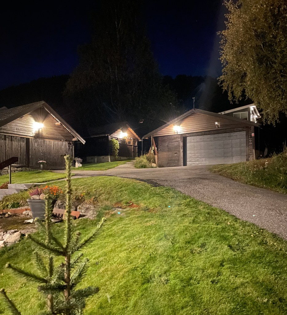 Når kvelden kjem, er det alltid godt å kunne tusle heim, – oppover eiga innkøyrsle. I går kveld hadde eg vakker musikk i hovudet og glade tankar for at det var haustrydda og fint rundt meg.