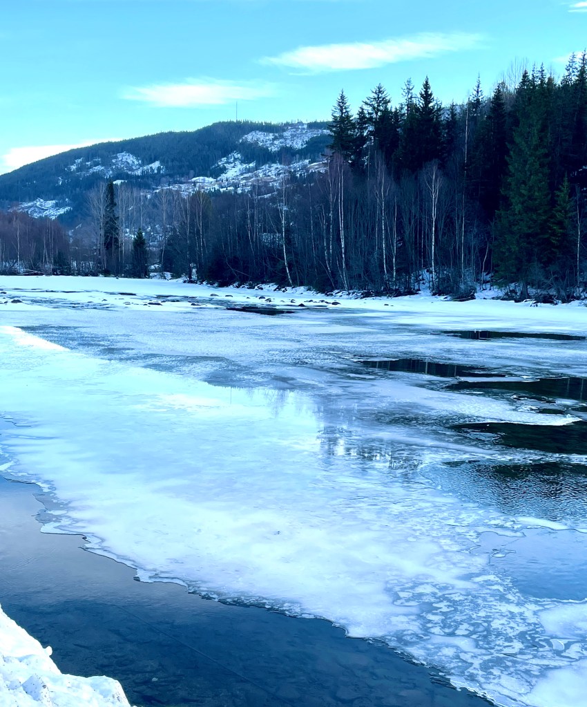 No om dagane tittar sola berre så vidt fram over Veståsen, men elva ligg framleis vintermørk og kald.