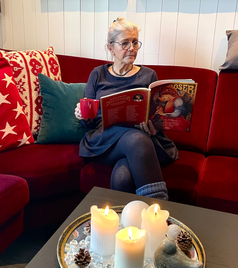 Eg har som målsetting å vera til stades og kjenne på her og no uansett om eg er i finstasen eller i kosebuksa, – uansett om eg er aleine, me er to-saman eller saman med mange. Eg veit at eg er av dei heldige. Eg veit at eg har det godt. Eg veit at jula kan vera sår. Eg veit at eg kjem til å lengte også dette året. Eg veit at eg har mykje å gle meg over.