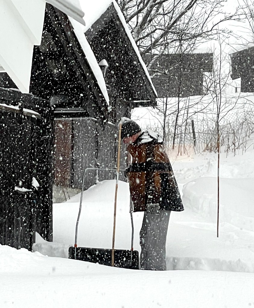 Det vart ein del snømåking i byrjinga av 2025. Denne karen min, som du ser på biletet under her, han likar seg betre ute når sola skin ein sommardag enn når dagane skiftar mellom å vera iskalde, isglatte eller med 70 cm nysnø.